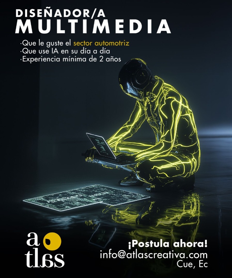 ๐ธ ๐ฅ๐ฒ๐พ๐๐ถ๐๐ถ๐๐ผ๐: Profesional Multimedia con 2 aรฑos de experiencia. ๐๐บ๐ฝ๐ผ๐ฟ๐๐ฎ๐ป๐๐ฒ: ๐๐ผ๐น๐ผ ๐ฝ๐ผ๐๐๐๐น๐ฎ๐ฟ ๐๐ถ ๐ฐ๐๐บ๐ฝ๐น๐ฒ๐ ๐ฐ๐ผ๐ป ๐น๐ผ๐ ๐ฟ๐ฒ๐พ๐๐ถ๐๐ถ๐๐ผ๐ ๐ฎ๐น ๐ฐ๐ผ๐ฟ๐ฟ๐ฒ๐ผ: INFO@ATLSCREATIVA.COM ย ๐๐๐๐ป๐๐ผ: DISEรADOR/A MULTIMEDIA. Residir en Cuenca y tener disponibilidad inmediata.