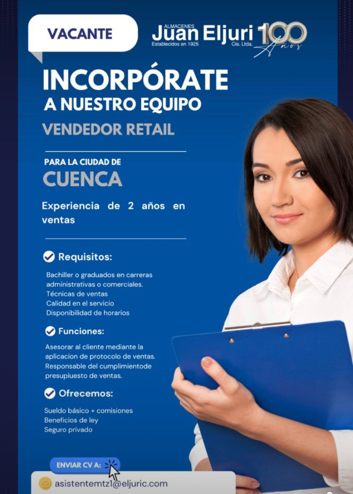 Asunto: VENDEDOR RETAIL. Residir en Cuenca y tener disponibilidad inmediata.