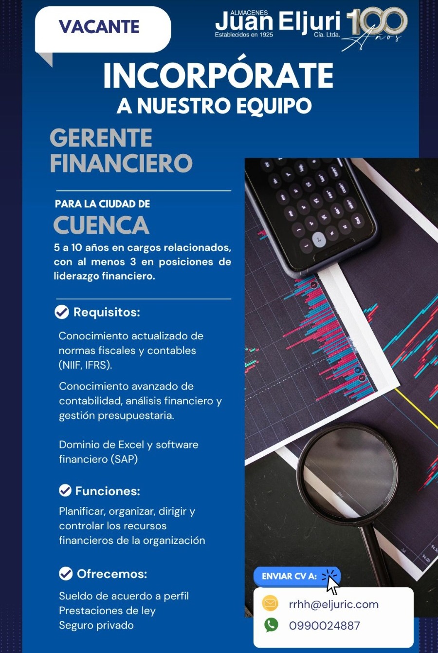 ✉️ 𝗔𝗽𝗹𝗶𝗰𝗮 𝗲𝗻/𝗮𝗹 𝘀𝗶𝗴𝘂𝗶𝗲𝗻𝘁𝗲 𝗰𝗼𝗿𝗿𝗲𝗼 𝘆 𝗪𝗵𝗮𝘁𝘀𝗔𝗽𝗽: rrhh@eljuric.com / 📲 0990024887, con el asunto: GERENTE FINANCIERO