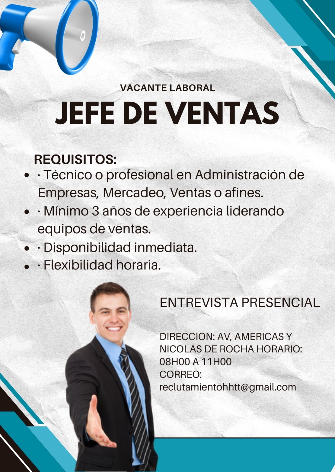 Trabajo para Jefe de ventas